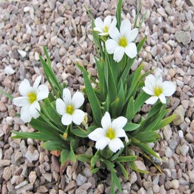 Skalnička podobná kosatcom,aspoň listami.Dosahuje výšku do 20 cm a kvitne na bielo v mesiacoch jún až júl.Má rada slnečné stanoviská..